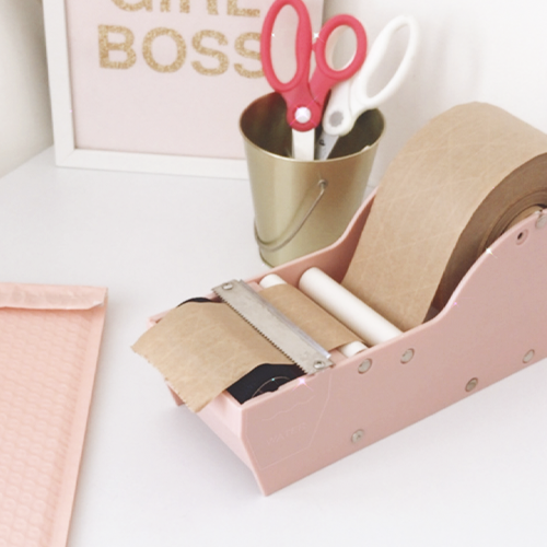 Conoces la cinta activada por agua? Queda impactante! Mucho mejor que la cinta transparente, y este dispensador tiene lo necesario para poder aplicarla! El rodillo negro aplicará el agua sobre tu cinta asi que no batallarás nada! Conocela!