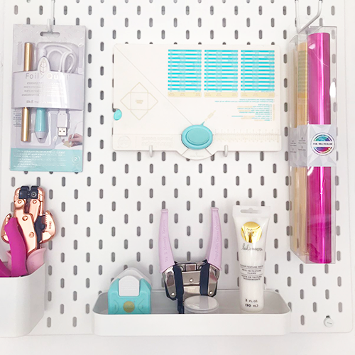 Panel de pared ideal para todas tus herramientas, materiales y productos. Marca: IKEA, me encanta hay de distintos tamaños y puedes agregar los accesorios que más se adapten al tipo de producto que colocarás.
