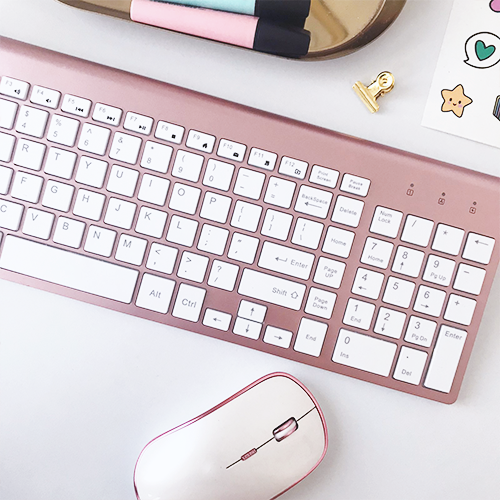 Trabajar en un escritorio bonito es super importante ya que sin duda fluyen mucho más las ideas. Este teclado esta de lo mas bello! es inalambrico y le durán mucho las pilas. Mouse incluido!