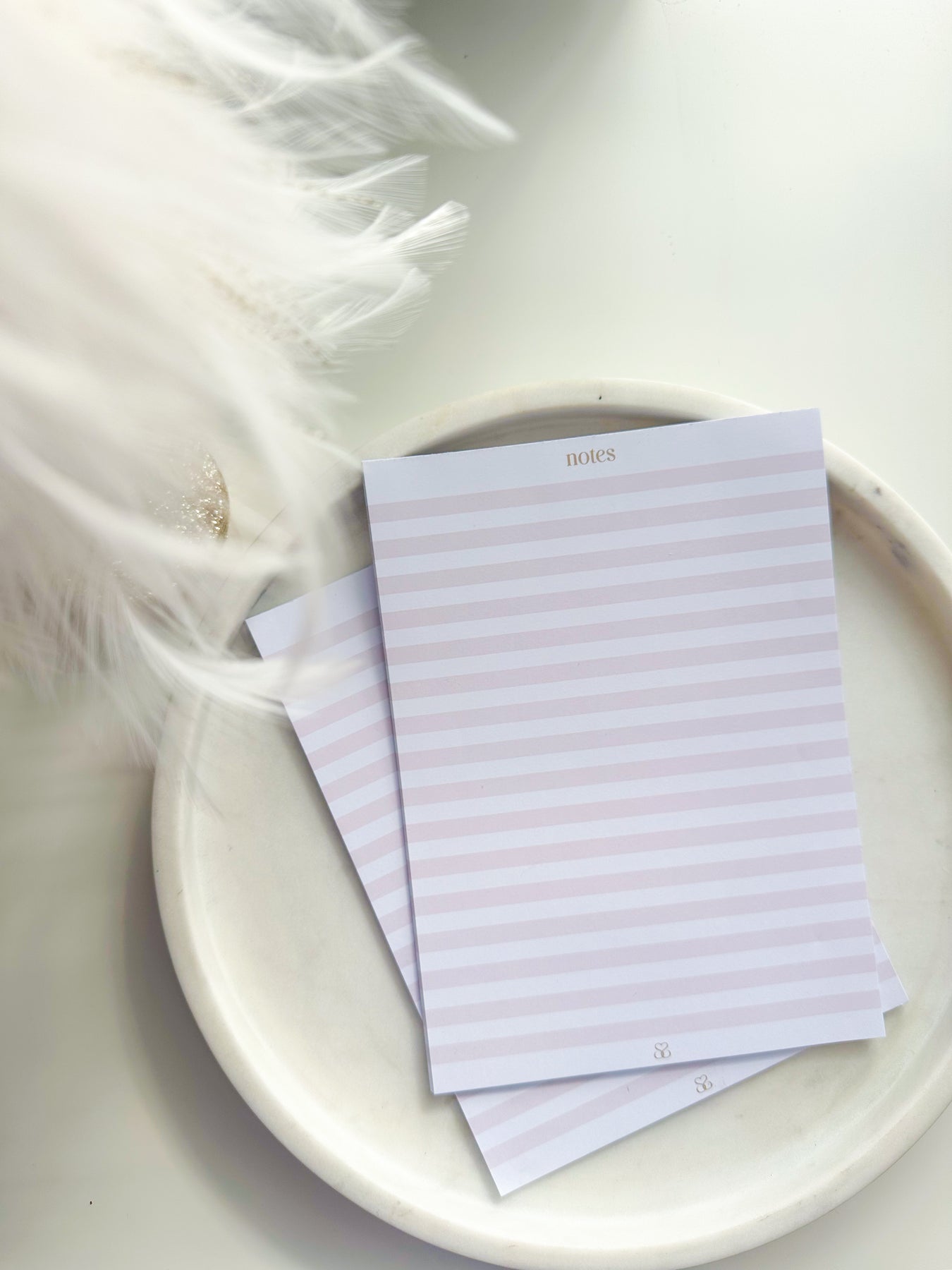 Un notepad elegante y práctico con delicadas rayas en tonos pastel, diseñado para ayudarte a organizar tus ideas, listas y notas con estilo. Perfecto para tu escritorio, este bloc combina funcionalidad y encanto, convirtiendo cada apunte en un momento especial.