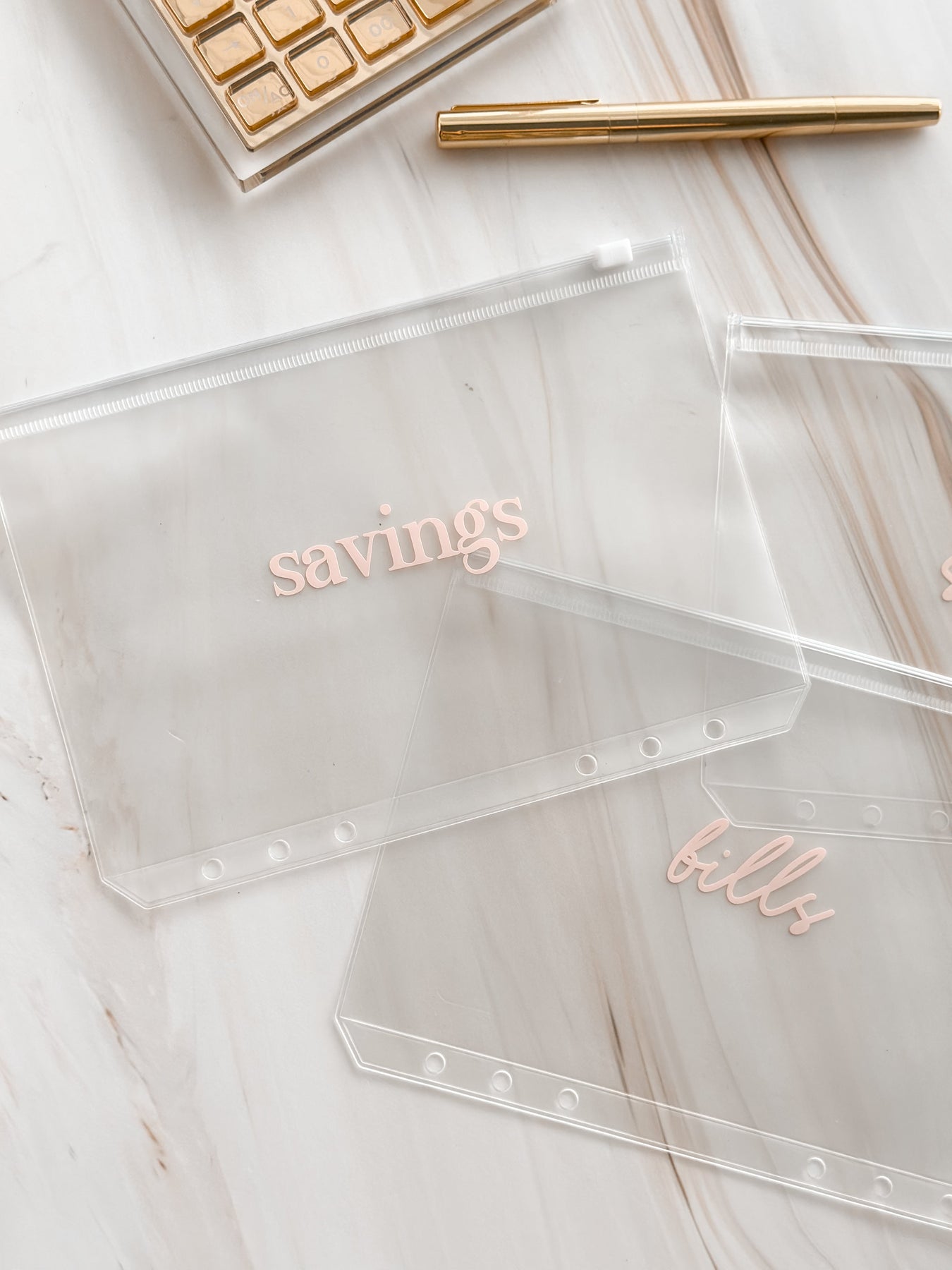 Además incluye 3 sobres "zipper" de plástico para Savings, Bills and Fun money, para que organices tu dinero. Puedes agregar mas sobres si así lo deseas.