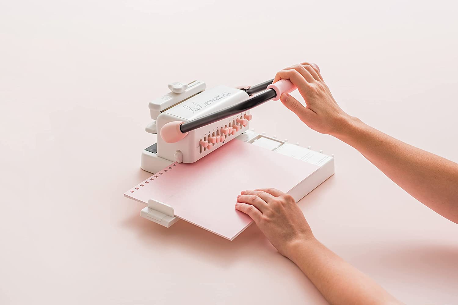 The Cinch seamer allows you to punch the perfect holes without measuring; perforates up to 20 sheets of bond paper at the same time and/or materials such as cardboard, MDF, acetate, acrylic, leather, vinyl up to 2mm thick.